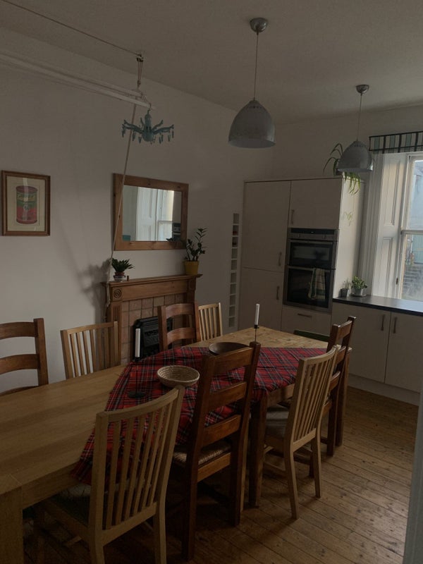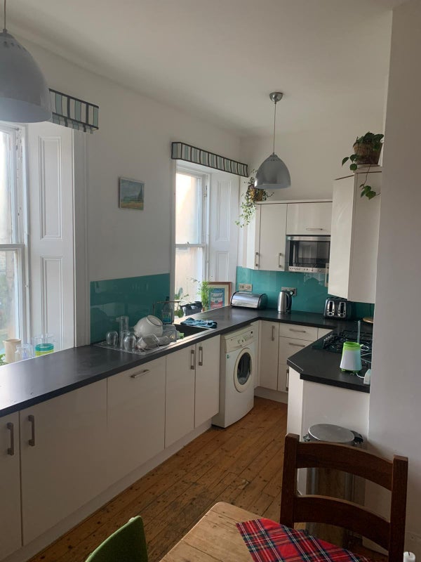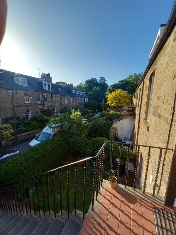 The flat is two floors - bedrooms upstairs and a living room, bathroom and large kitchen downstairs. It is in a beautiful area of Edinburgh, in a quiet neighbourhood with plenty of green space nearby.