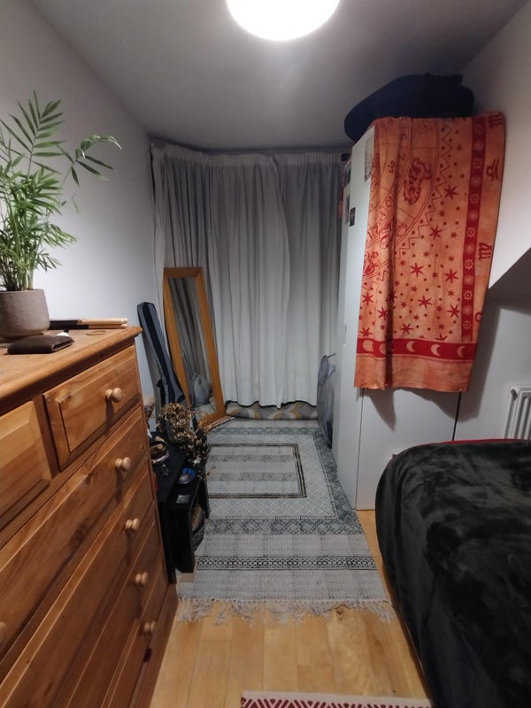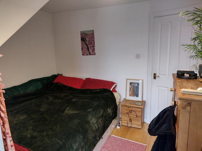 The room on offer is furnished with a double bed, drawers and wardrobe. You would also have your own bathroom downstairs.