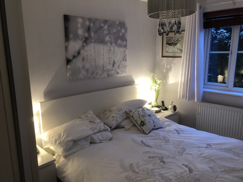 Available for an initial four months, I can offer you a clean and comfortable ground-floor room with king size bed in my home. Good bedroom storage space. The ground floor cloakroom with sink and toilet is next door to the bedroom. Access to a larger shared* bathroom - with bath and shower is on the 2nd floor (*for the sole use of the lodger, unless there is any additional visitor in residence), a decent-sized living room, shared study, shelf space in the fridge, freezer drawer and a small kitchen cupboard space. There is a small, yard garden outside with a large table and bench. You are welcome to use all communal areas.