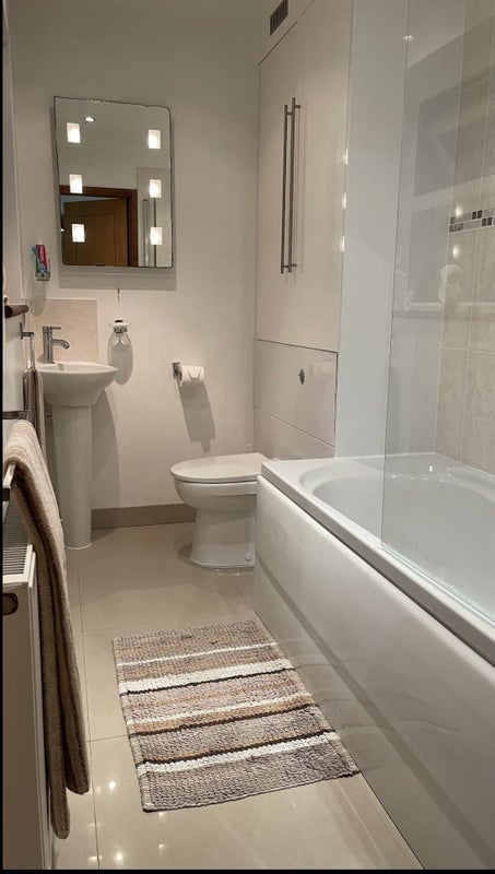 Bath and shower, shelf in bathroom cupboard ( good size )