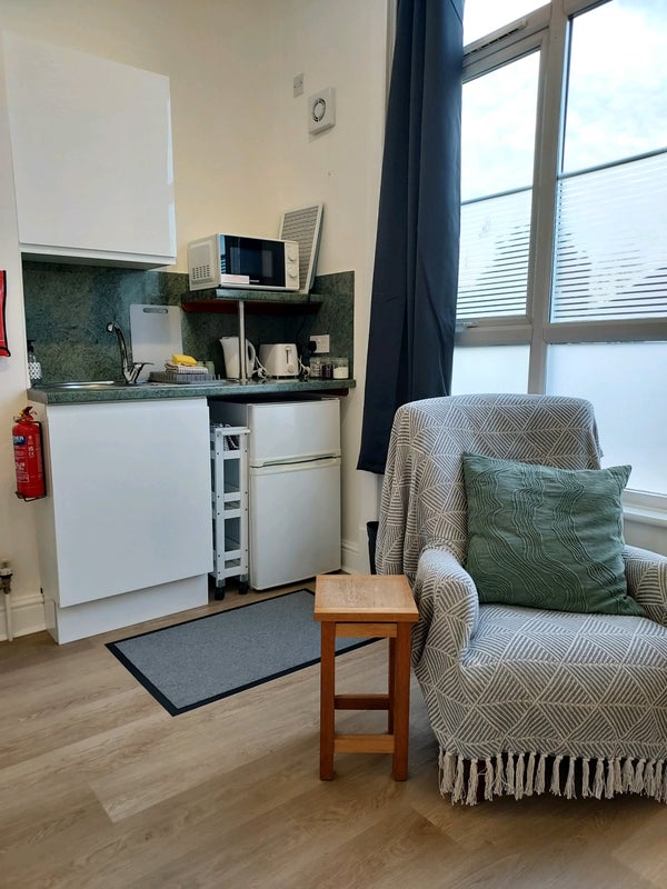 Serviced studio apartment (second floor) available at Priory Lodge Serviced Apartments.