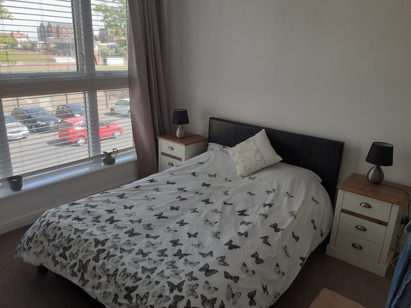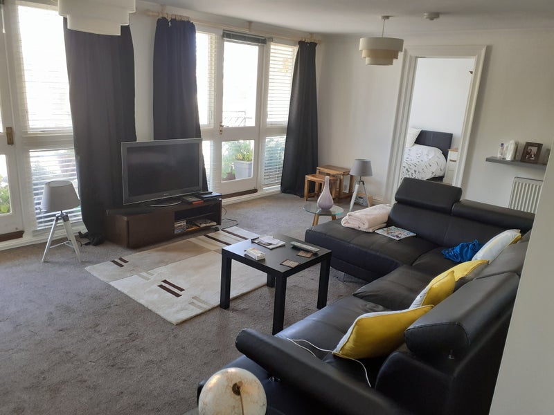 Nice room in 2 bed apartment with balconies. Share kitchen and living area. The apartment is opposite a sports training/ football ground and has a private park for tenants use behind the property. It's approximately 100meters from the beach. Bowls, basketball are located next to the beach. The apartment is one of 10 in a converted hotel. I am looking for a working person only, obviously clean and considerate to the other apartments. There is parking for 1 car on the property.