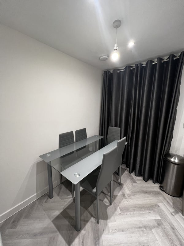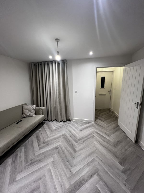 Bright and stylish en-suite room available in a newly built home shared with two friendly professionals. The room comes fully furnished with a comfy bed, storage, and private bathroom.