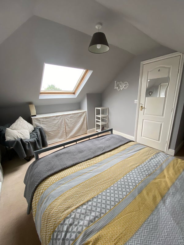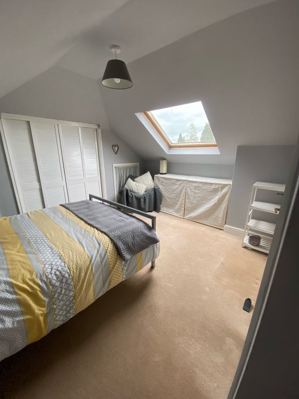 Large double room with sole use of bathroom . Shared house with one other and small full time therapy dog .Garden and parking. Rent includes all bills.