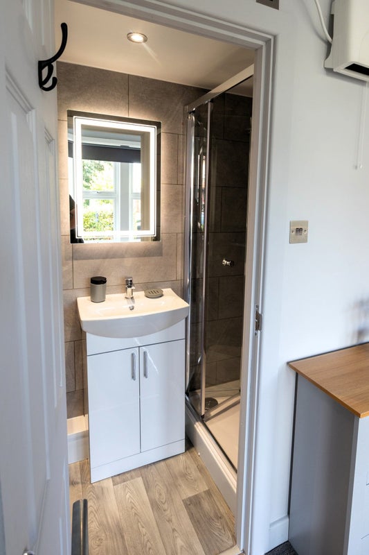 Each Studio Room has its own ENSUITE bathroom with modern square styled toilet, shower, wash hand basin, comfortable mirror with LED lights and and shaving power point.