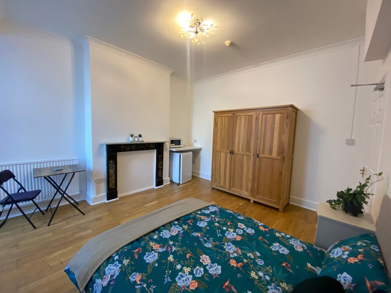 The room is fully furnished to a high standard and includes a bed, wardrobe, storage solutions, and the added convenience of an under-counter fridge. The property benefits from gas central heating and double glazing throughout, ensuring warmth and energy efficiency all year round.