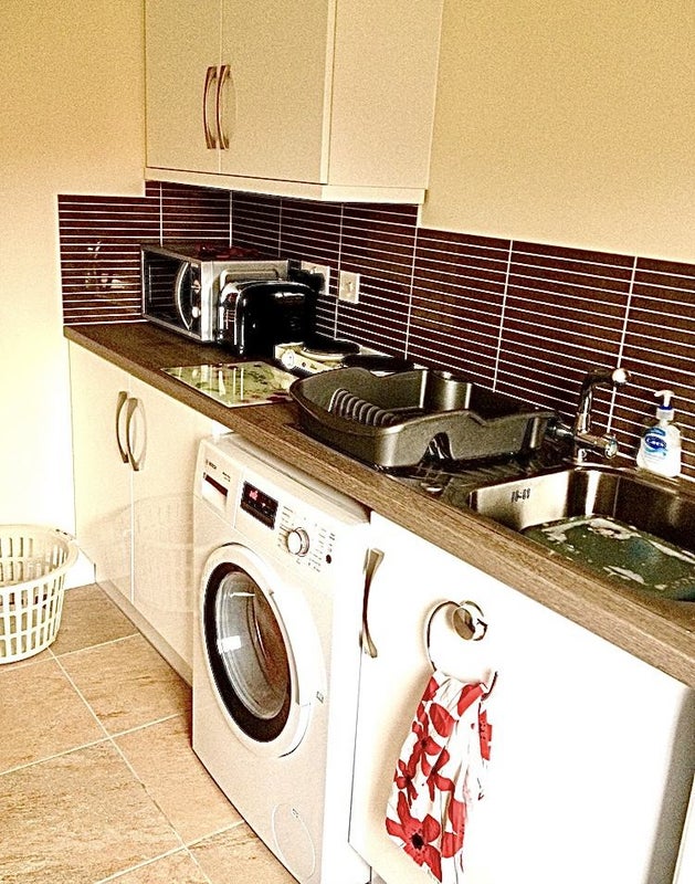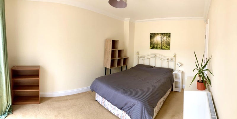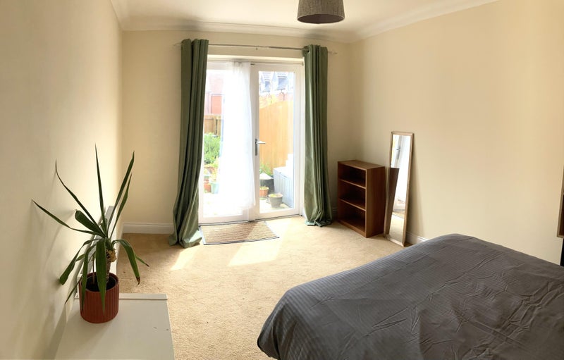 It’s fully furnished with comfortable, orthopaedic mattress & has its own entrance with double patio doors looking out to garden. (Wardrobe to be arriving shortly, not seen in photos)