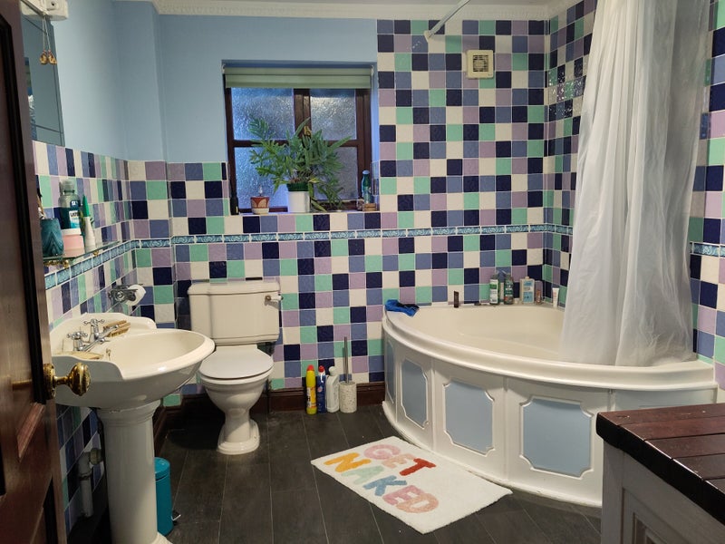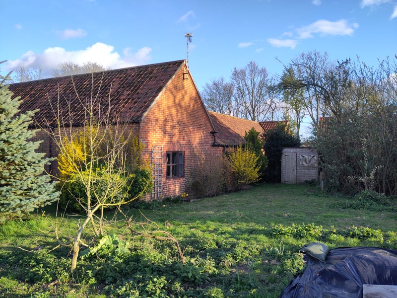 The house has very large rooms, a wood burner and character beams a garden with fruit trees backing onto pasture, a corner bathtub and is a 5 minute walk from a river with public footpaths in multiple directions. (Sorry no photos of river only videos) and parking.