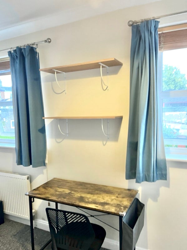 Fully furnished with storage bed, wardrobe, built-in cupboards, desk and chair, TV and ethernet sockets