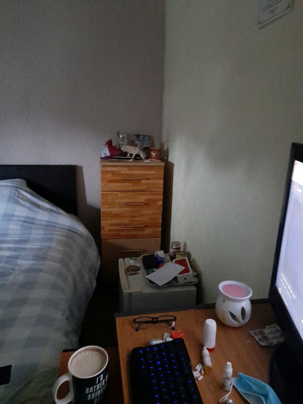Large double furnished room. 2 x chest of drawers. Bedside cabinet. Large wall mounted tv. Corner bath with electric shower. Sink toilet and towel rail holder.