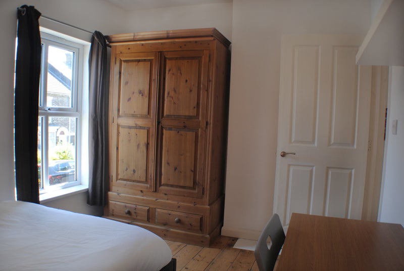 Fully furnished modern double with double divan bed, large wardrobe, bedside table. Desk and chair for home working can be provided. Shares a 1st floor shower room or master bathroom with bath.