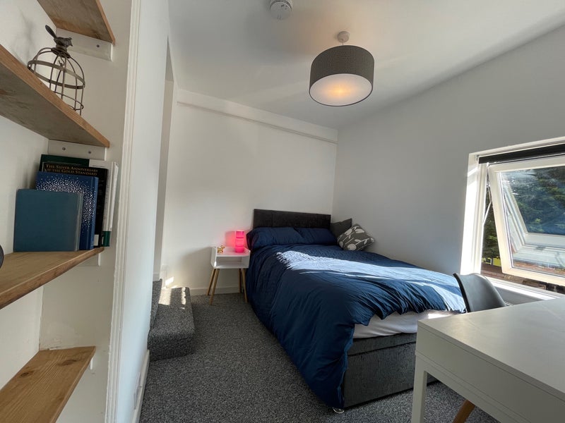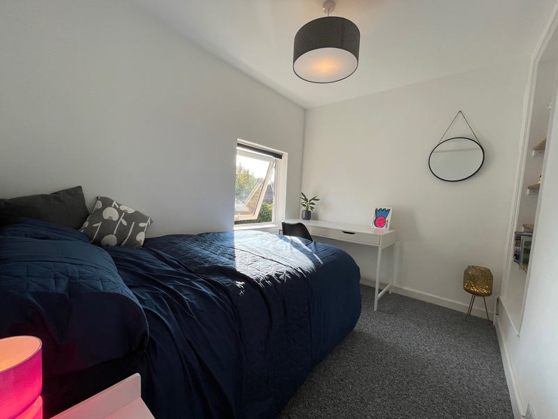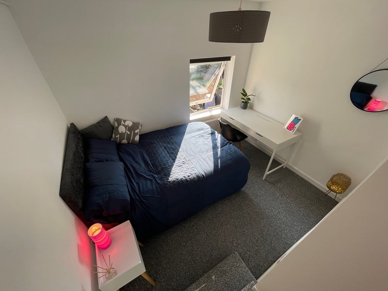 Double bed with shared bath toilet shower bathroom with one other girl, extra big walkthrough wardrobe space, own front garden space and entrance.