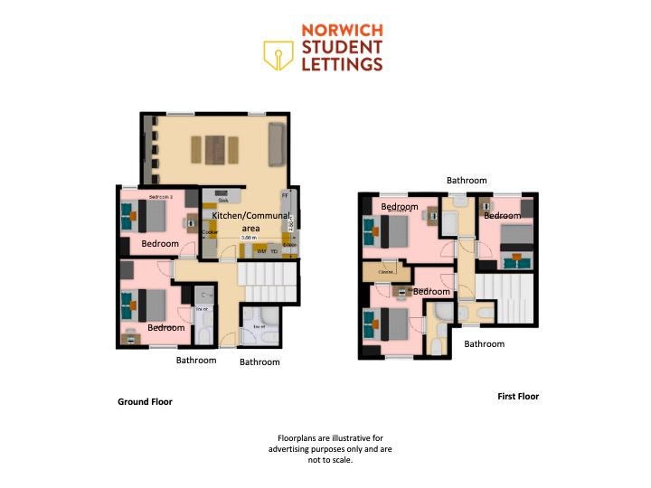 5 double bedrooms all fully furnished, including 2 bathrooms and 2 x en-suites and a separate toilet.