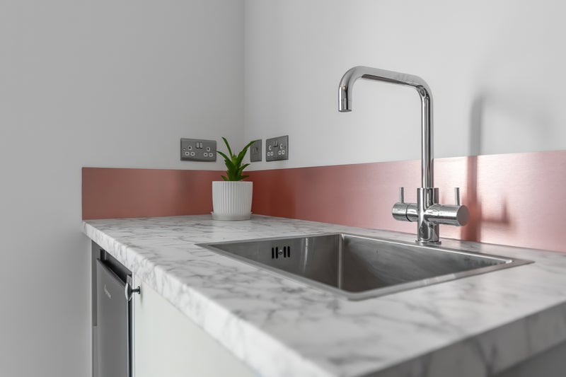 • Kitchenette in room – sink and fridge with freezer drawer