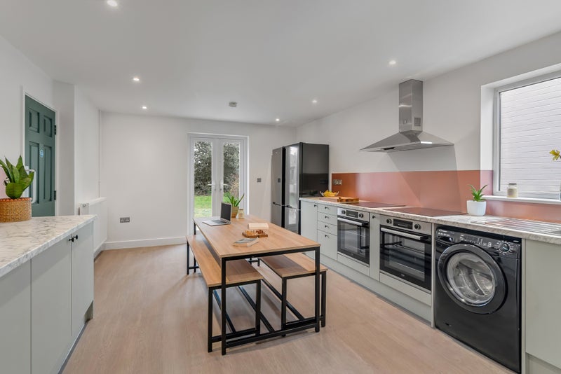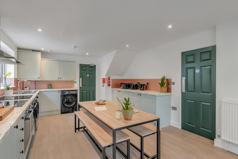 • Excellent communal spaces – large kitchen and dining area with double ovens, double hobs, two fridge freezers, washing machine, tumble dryer, and all essentials