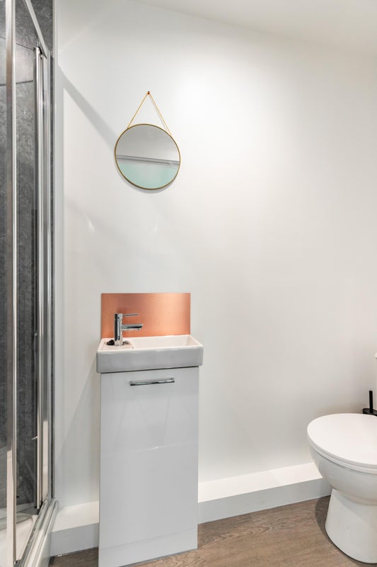 Downstairs you’ll find a large shared kitchen fully equipped with oven, fridge freezer, washing machine, tumble dryer and all essentials, plus a comfortable sofa and flatscreen TV.