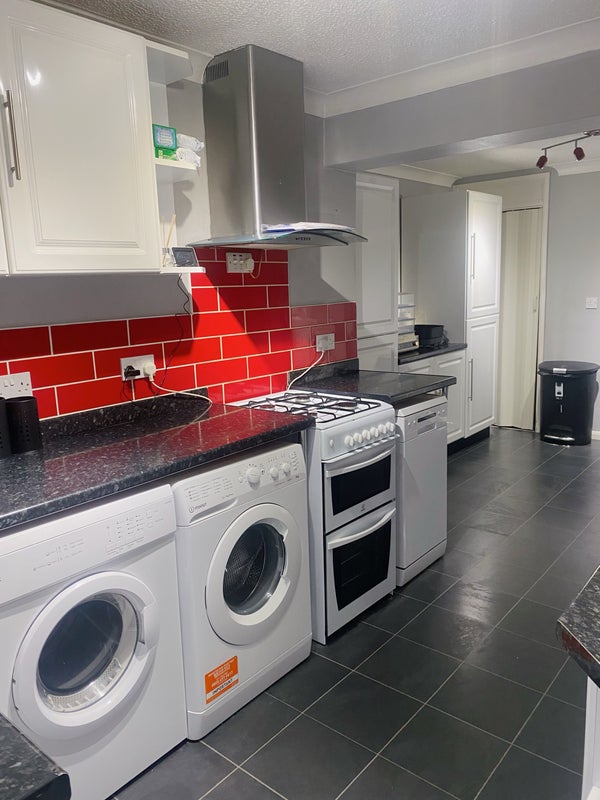 I have an en-suite double room available in a three-bedroom house with a large garden. You will have your own private bathroom, while the kitchen and living room will be shared. The room is for single occupancy only.
