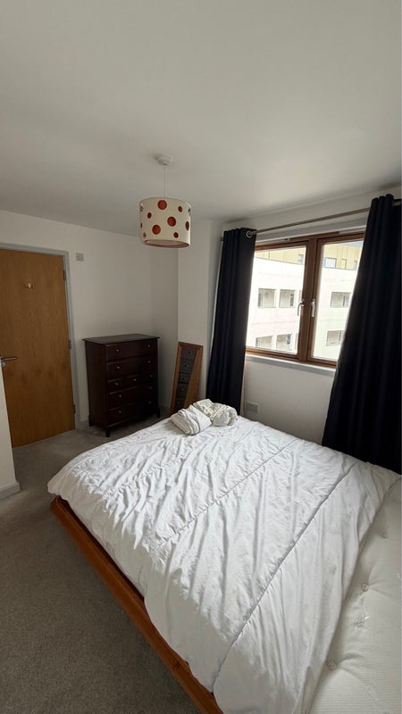 A wonderful, spacious, clean city centre flat sharing with one other. The large double room has an en-suite shower and toilet and is furnished. It includes a king size bed and chest of drawers.