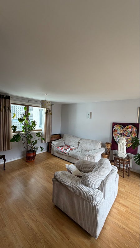 The flat has a decent sized shared kitchen and a large living space. The other tenant works a lot of hours so is invariably not at home and would prefer a quiet, considerate flatmate. Non smoker. Pets considered.