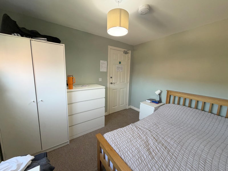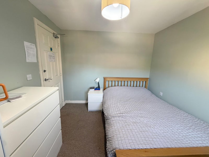 The available double bedroom is fully furnished with a bed, wardrobe, chest of drawers, desk, and bedside table, providing everything needed for a comfortable and practical living space.