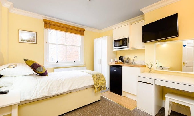 This newly decorated Ensuite with a double bed with ensuite bathroom, includes kitchenette with fridge, toaster and tea coffee