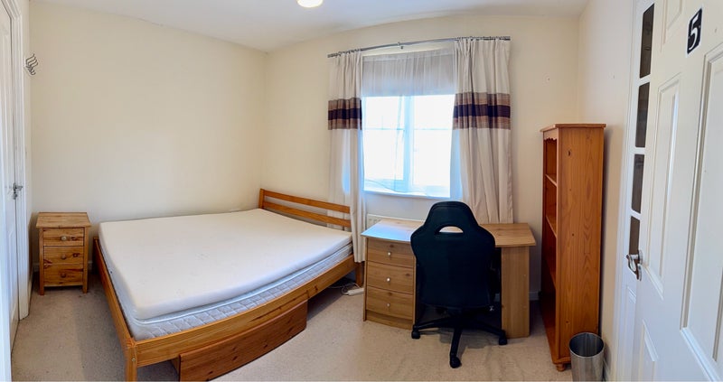 The house is centrally heated with double-glazed windows and is furnished with all the necessary amenities, including 24-hour WiFi internet, two refrigerators/freezers, a microwave oven, a cooker/oven, a dishwasher, a washing machine/dryer, a tumble dryer, and a TV. Each bedroom has a double bed, bedside drawers, a study table, book shelves, and wardrobes. The house also has an integrated fire/smoke alarm system with emergency lighting, a carbon monoxide detector, and up-to-date gas and electricity safety certificates.