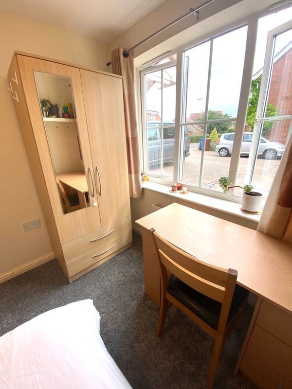 Fully furnished, neutrally decorated. Contains a standard double bed, wardrobe, under bed storage, bedside table, plus desk/chair for home working. Double glazed windows for heat efficiency & noise reduction. There is a TV point and a lockable door for privacy.