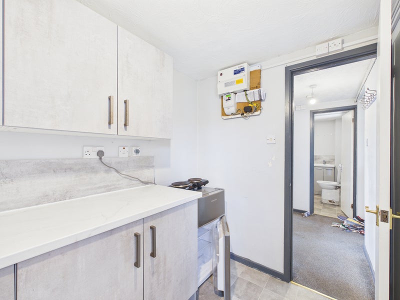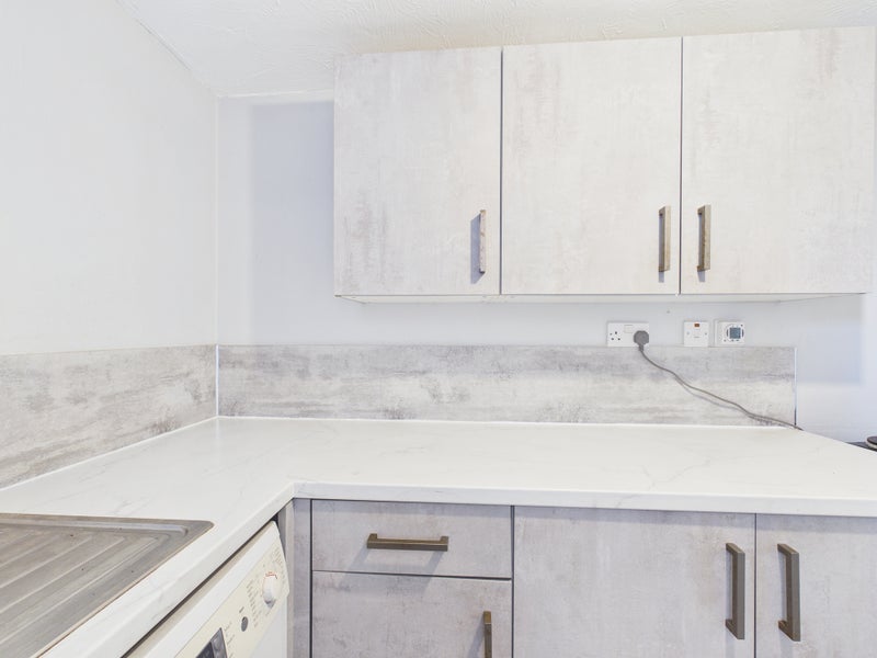 The kitchen is modern and functional, fitted with a range of units and worktop space, ideal for everyday use.