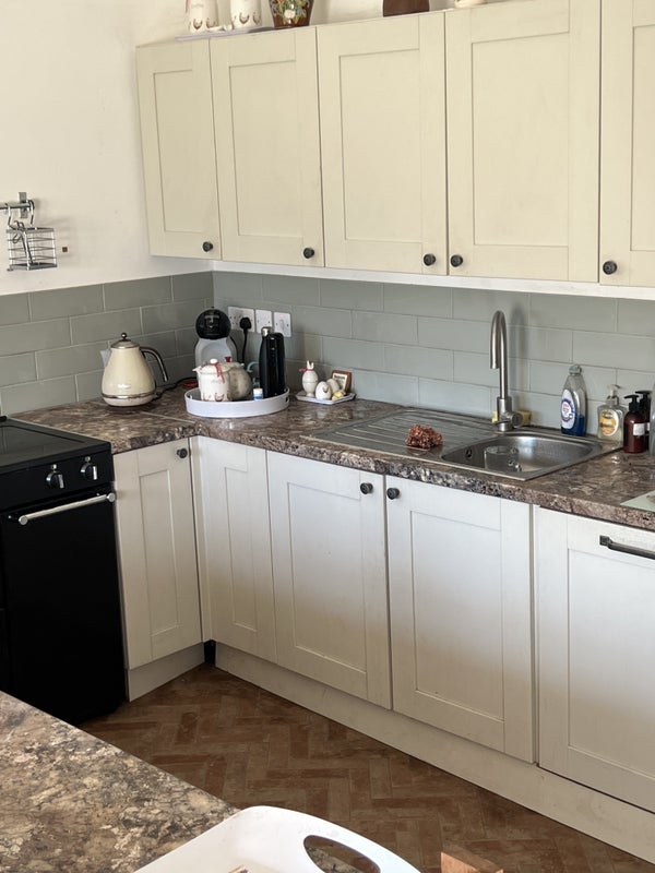 .off street parking with large double room. All rooms shared in the house. I am 30 years old and have a dog.