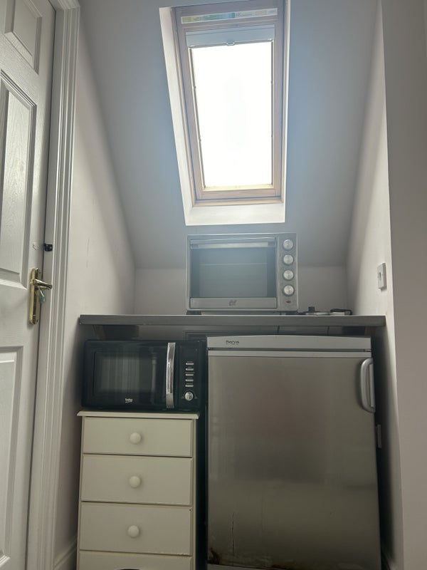 I am letting out the top floor of my 3 storey house. This includes sole use of furnished small double bedroom , lounge, bathroom and landing kitchenette. Free street parking or rental of one garage at an extra cost . WiFi, Netflix, Amazon prime and bills included.