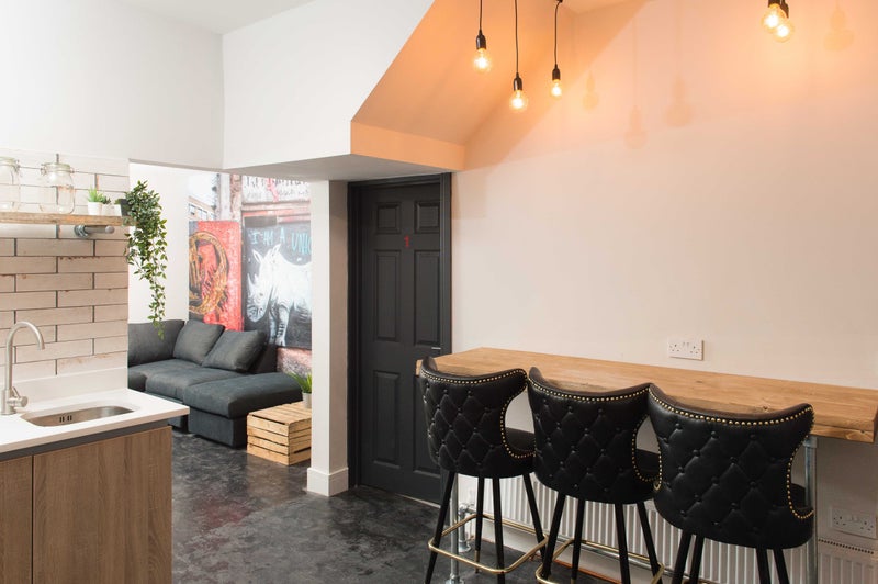 This property has a communal kitchen area, complete with multiple integrated appliances: two hob, two ovens, and a large fridge freezer. It also benefits from a breakfast bar 🧇🥓