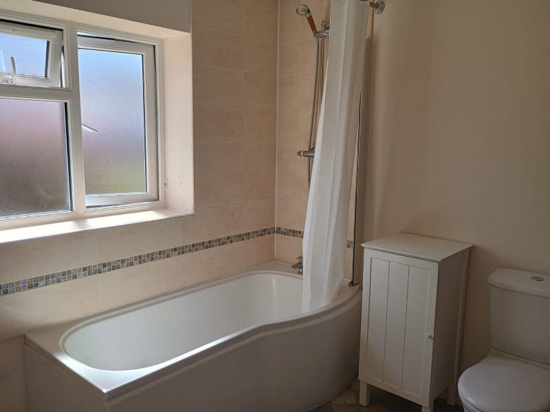 The ensuite bedroom is of a generous size with a bath, over bath shower and heated handrail.