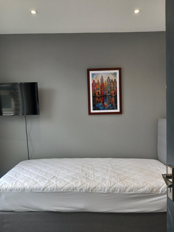 The rooms have a flat screen T. V. wardrobe and drawer space and en-suite shower/toilet rooms.