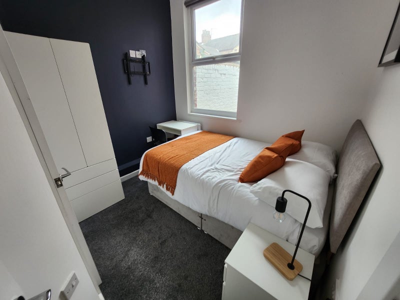 The room is located on the ground floor and come with double bed, wardrobe, bedside table and desk.