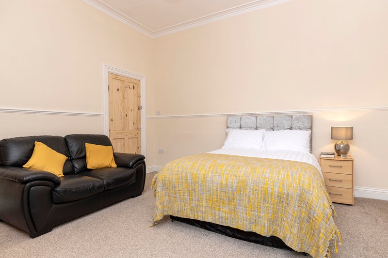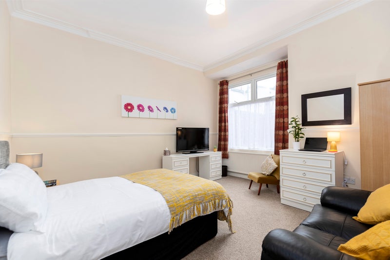 Each double bedroom is fully furnished including a TV. We supply all essential furniture - a double divan bed, wardrobe and drawers and bedside table and lamp.