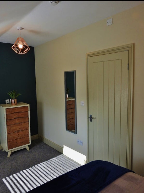 This house is a 5 bed ( 4 ensuite ) 3 story town house located 5 mins from the Train station and town centre, apart from ensuites there is also a separate bathroom with a bath and shower, the rooms are all tastefully decorated in Farrow & Ball colours with LED lighting, new beds, chest of drawers, bedside table and either a wardrobe or cool hanging space, there is an outside lockable bike store in the back yard which is a lovely sunny space to sit out and relax, have a BBQ or just chill with a cold drink! The communal sitting/dining room is bright and colourful with a comfy large leather Chesterfield sofa and bespoke dining table for 5 people, large smart TV with free view and Netflix, off this area is a gorgeous kitchen with 2 ovens and hobs , 2 stand alone fridge/freezers, washer and separate dryer. The house is central yet tucked away towards the North Side and both beaches are easily accessed as is the town, Aldi, Tesco and Sainsburys All rooms are lockable and great systems are in place to make the whole process very easy to move in and enjoy this fantastic home.