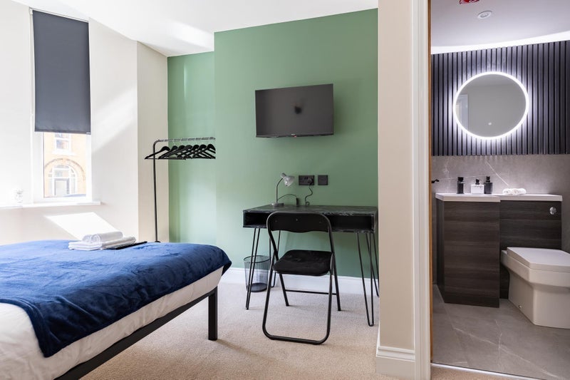 There is WiFi throughout and charging sockets and in-built blue-tooth speakers in each room. Each bedroom is semi-furnished and has an en-suite bathroom.