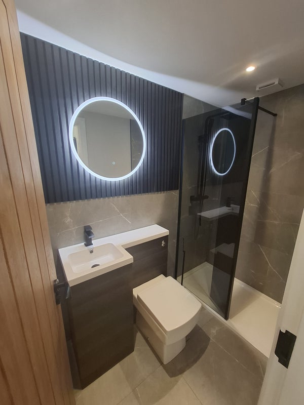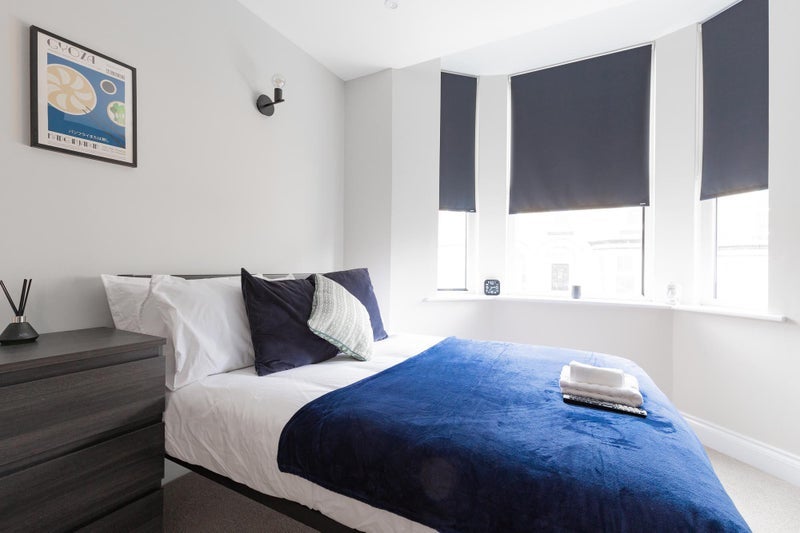Room 1 - A large, ground floor room at the front of the house with a double bed, pocket-sprung mattress & mattress protector, wall-mounted TV, double wardrobe, bathroom with double rainforest shower, toilet, basin & halo mirror, (with a built-in bluetooth speaker) and a lock on the door.