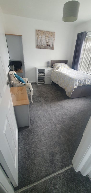 Large furnished room on first floor. Newly decorated and with modern shower room which is next to the bedroom. Kitchen diner downstairs. Clothes washing/dryer service included. Fridge/freezer, induction hob and small table in the kitchen and another shower room downstairs. Garden area. Parking very near property. Sharing with one person only with a small very friendly dog. Close to shop and bus routes to Stockton town, Thornaby shopping centre, Teeside park and Stockton college/ Durham University (stockton campus)