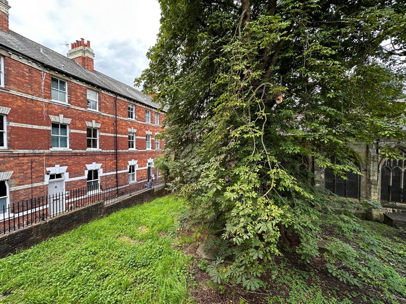 The room is a cozy double with stunning views of the churchyard below.