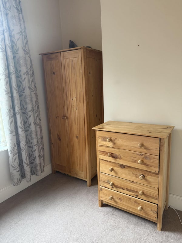 Furnished room with bed, wardrobe and drawer. And we do have a lovely cat in the house.