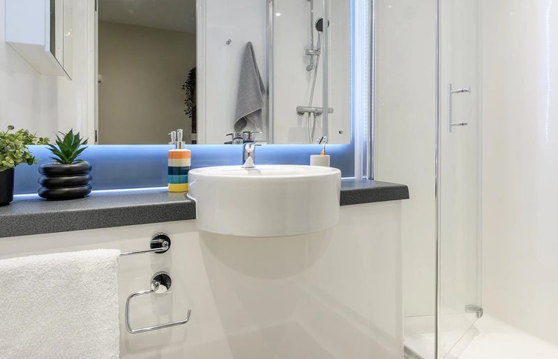 Self-contained kitchen, breakfast bar and bathroom