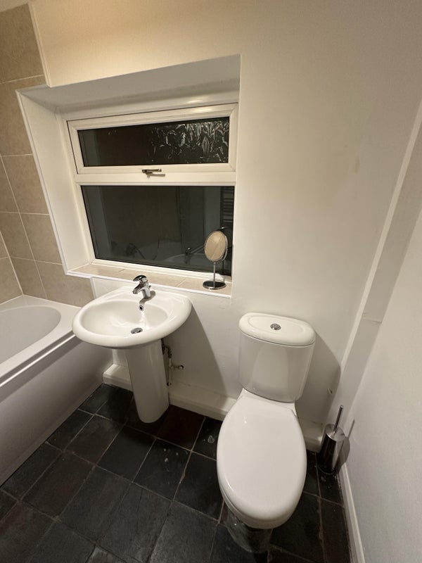 You will have your own full bathroom on the ground floor behind the kitchen. Both bedrooms are upstairs.