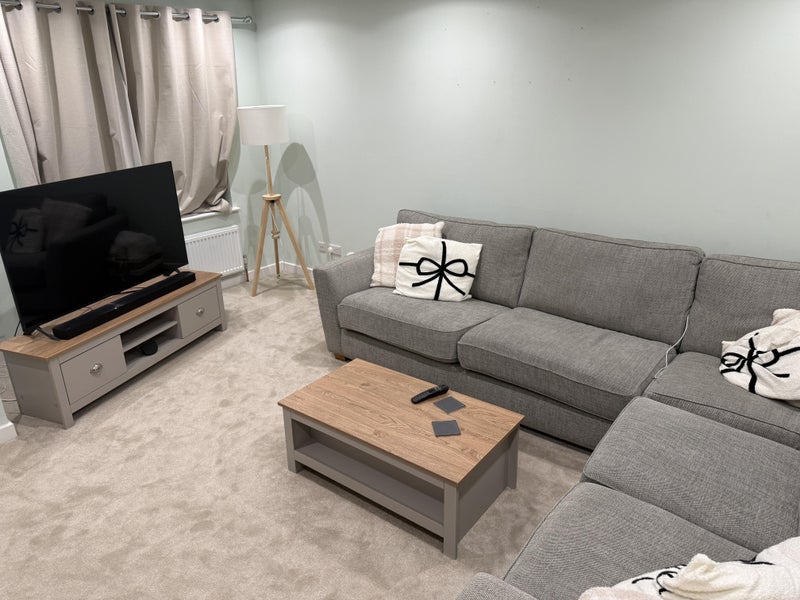 The house has a shared living room/kitchen with and upstairs bathroom and downstairs toilet. The house also has a nice garden space which gets the sun in summer and im always prepared to cook a BBQ. The house also has a drive that can fit 3 cars.