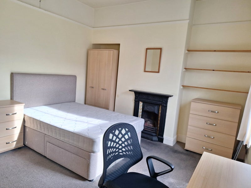 Large double room in lovely fully furnished house only 15 minutes walk into York city centre and near hospital and railway station, two bathrooms, free parking outside the house and sunny secure back yard to sit in and also store bikes, local shops and take aways near by.