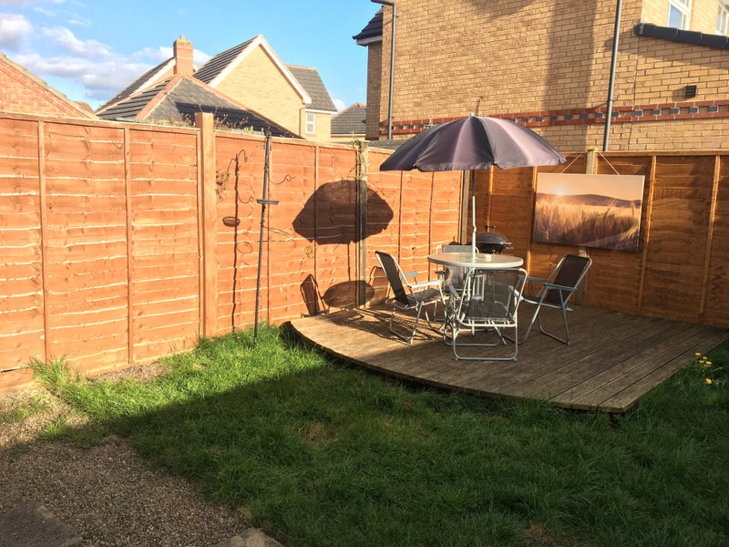 The house comes with a garden/patio area, spacious living room with corner sofa and projector, well equipped kitchen, conservatory, bathroom with bath and overhead shower and 2 double bedrooms.
