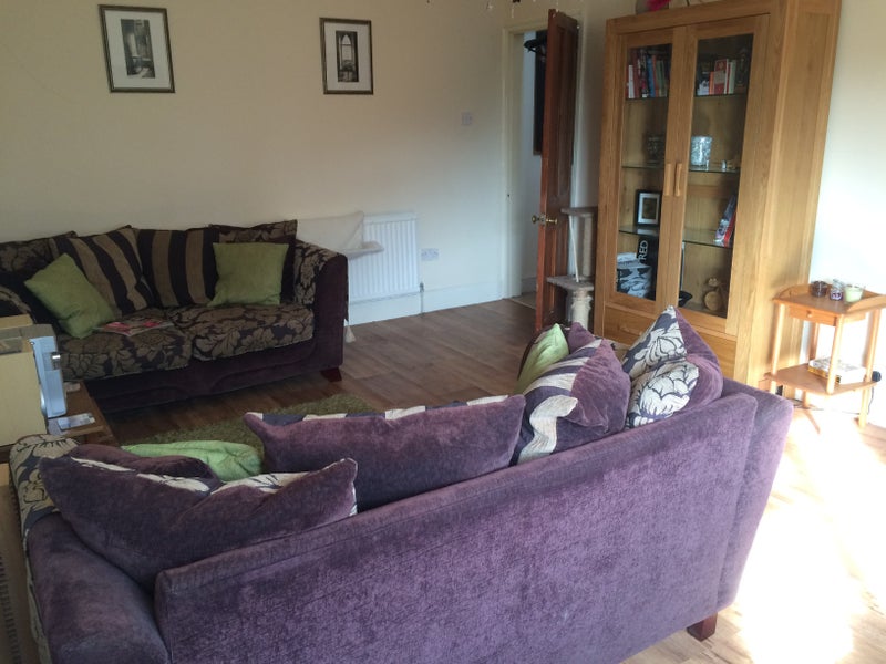Double bed, built-in wardrobe included. One bathroom with bath and shower, one downstairs w/c. Must like cats (one friendly cats at property). Large garden (currently under construction). Two living rooms, large kitchen/diner.