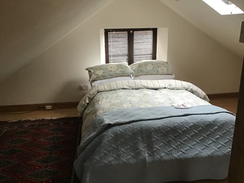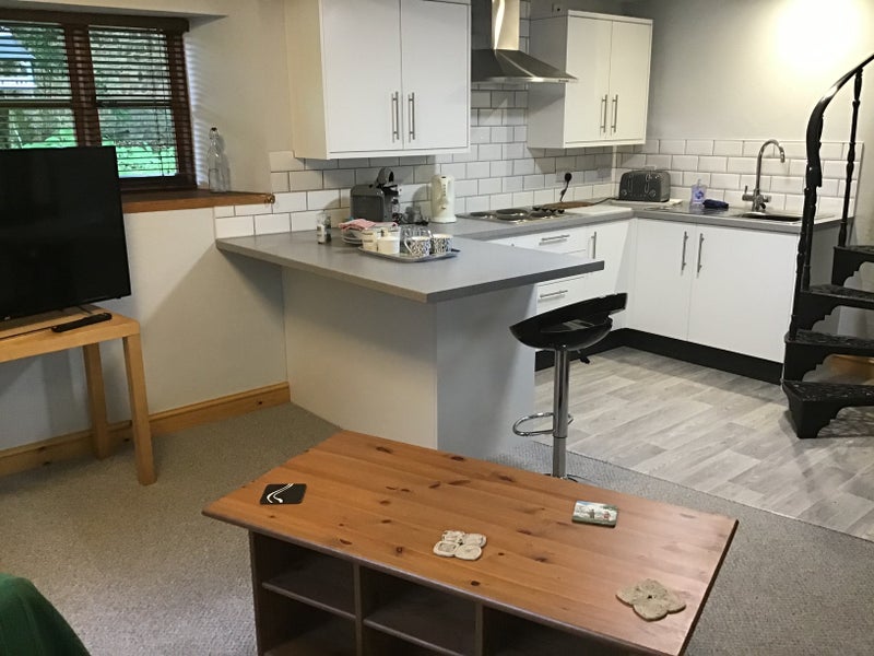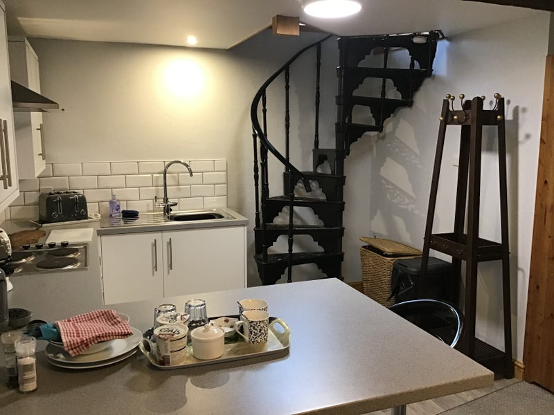 This barn is situated within the confines of our 16th century farmhouse. It comprises of a ground floor sitting room and kitchen, along with shower room and toilet. The bedroom is on the first floor, accessed by a spiral staircase. This has low headroom but very comfortable.