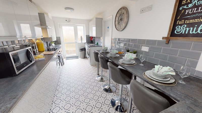 3) Fully tiled high specification brand new bathrooms. Including large mirrors, under sink storage and heated towel rack.