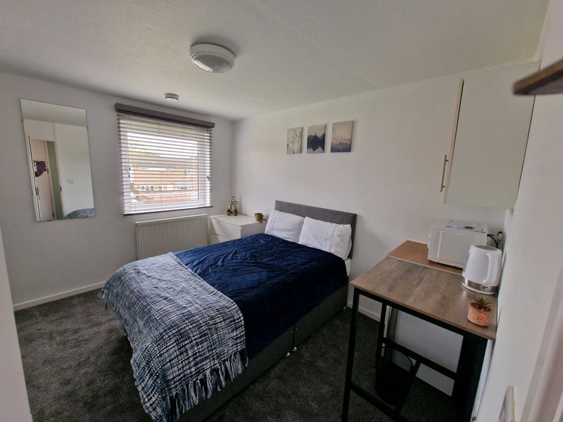 All rooms are fully furnished to a very high standard with a double bed with storage, wardrobe, chest of drawers, bedside table. TV Aerial sockets. We also have a microwave, fridge/freezer and kettle for your use in your own room.